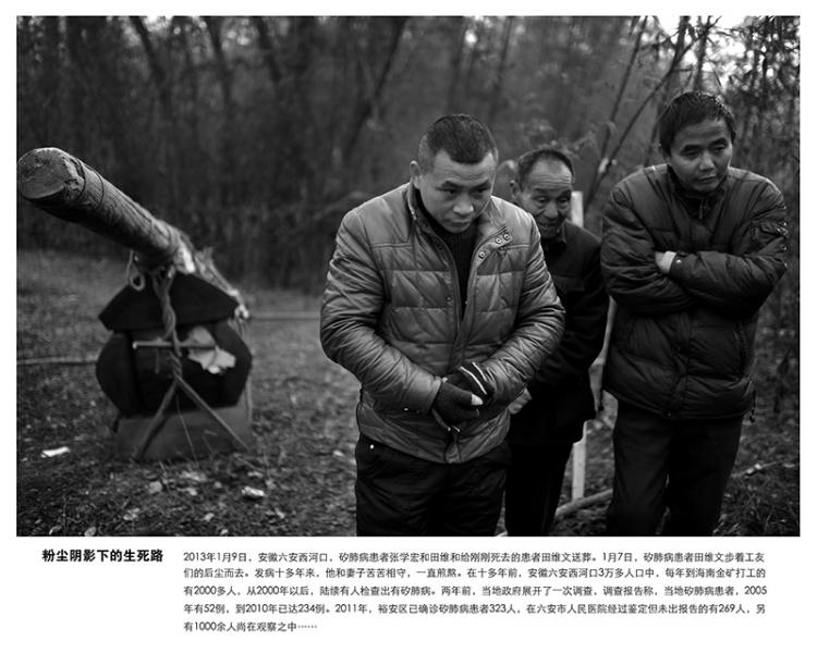 2013年1月7日,矽肺病患者田维文步着工友们的后尘而去。发病十多年来,他和妻子苦苦相守,一直煎熬。老田的离去对他来说是一种解脱,自此他可以不再每天依靠着吸氧机,不再痛苦。老田妻子的哭泣是对她这么多年的守候没能挽留老田的遗憾,也是对自己这么多年艰难生活的倾诉。