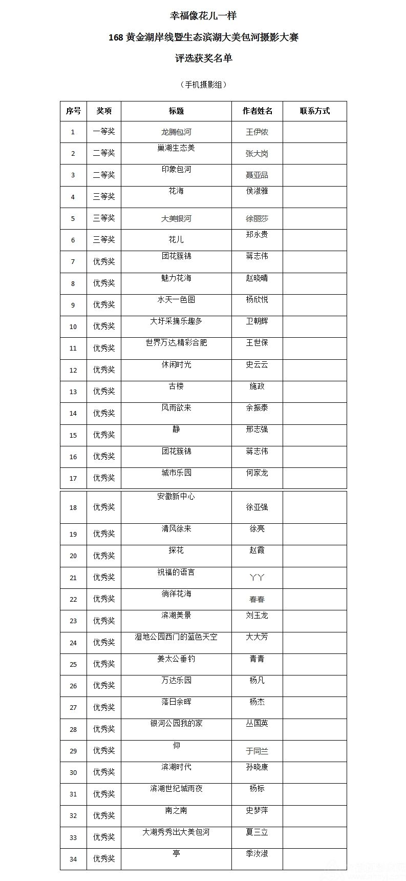 “幸福像花儿一样”168黄金湖岸线暨生态滨湖大美包河摄影大赛自启动以来,社会各界高度关注,广大摄影爱好者积极参与。大赛共收到相机组参赛作品1500余幅(组),手机组参赛作品近200幅(组),作品涉及包河区自然风光、人文生活、民俗风情、城市建设、节庆文体娱乐活动等方面内容。