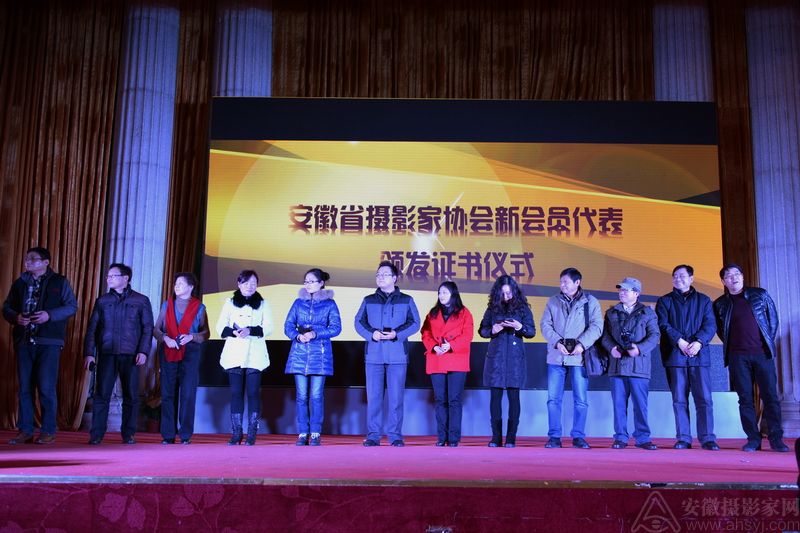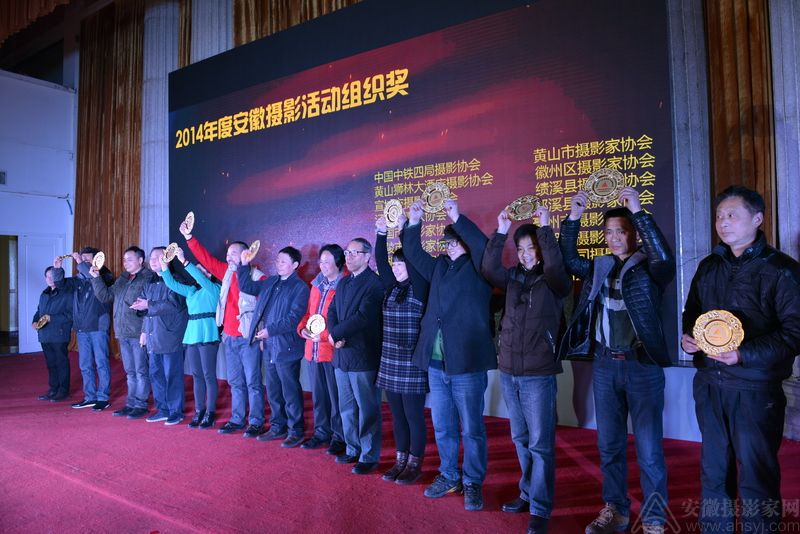 安徽省摄协主席陈志勇首先代表省摄协主席团向全省摄影人致以节日的问候和美好的祝愿,并为2014年下半年新加入省摄协的会员代表颁发了会员证;副主席刘小兵宣布了“2014安徽摄影界十件大事”;副主席刘少宁介绍“省摄协2015年工作要点”;副主席许国宣读了安徽省摄影家协会表彰决定,对在2014年度为安徽摄影事业作出突出贡献的单位和摄影家们进行了表彰。会议现场还展示了《大美安徽》延时摄影片、上海国际摄影艺术展·安徽摄影家获奖及入选作品、安徽卫视“大美安徽”主题系列摄影公益广告片、2014“安徽摄影家网”摄影月赛年度总评选获奖作品等摄影精品佳作,并为获奖的摄影家们颁发了证书、奖品。