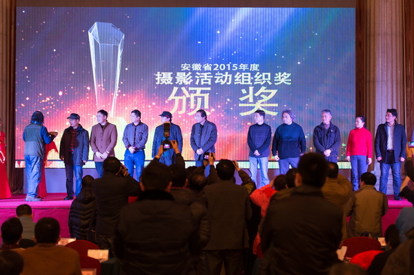 会上,安徽省摄协主席陈志勇首先代表省摄协主席团向全省摄影人致以节日的问候和美好的祝愿,并为2015年下半年新加入省摄协的会员代表颁发了会员证;副主席许国宣布了“2015安徽摄影界十件大事”;副主席刘少宁介绍“省摄协2016年工作要点”;副主席、秘书长乐卫星宣读了安徽省摄影家协会表彰决定,对在2015年度为安徽摄影事业作出突出贡献的单位和摄影家们进行了表彰。会议现场还展示了第25届国展安徽获奖及入选作品、“农民工·我的兄弟姐妹”全国摄影大赛部分获奖作品、“美丽中国•安徽之旅”中国摄影报2015安徽摄影拉力赛获奖作品及花絮、《大美安徽》延时摄影片、2015“安徽摄影家网”摄影月赛年度总评选获奖作品等摄影精品佳作,并为获奖的摄影家们颁发了证书、奖品。