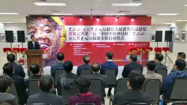 农民工•我的兄弟姐妹摄影大展获奖精品展览开幕式暨第三届“中国中铁四局杯”农民工•我的兄弟姐妹摄影大展启动仪式现场。