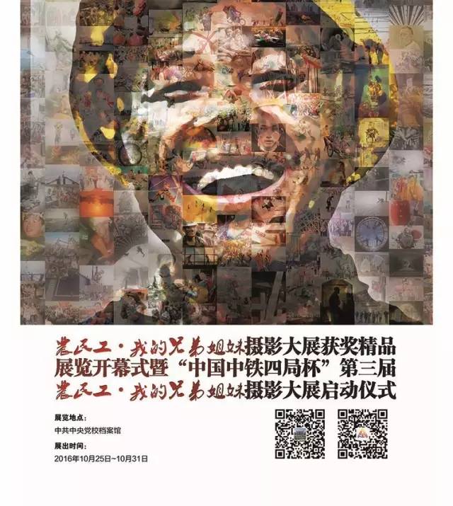 10月25日,农民工•我的兄弟姐妹摄影大展获奖精品展览开幕式暨第三届“中国中铁四局杯”农民工•我的兄弟姐妹摄影大展启动仪式在中共中央党校举行。该活动由中共中央党校图书馆、中国摄影家协会、安徽省文学艺术界联合会、安徽省总工会、安徽省农民工工作领导小组办公室、中国中铁四局集团有限公司联合主办,安徽省摄影家协会、中国中铁四局党委宣传部(企业文化部)承办,中国摄影报社协办。