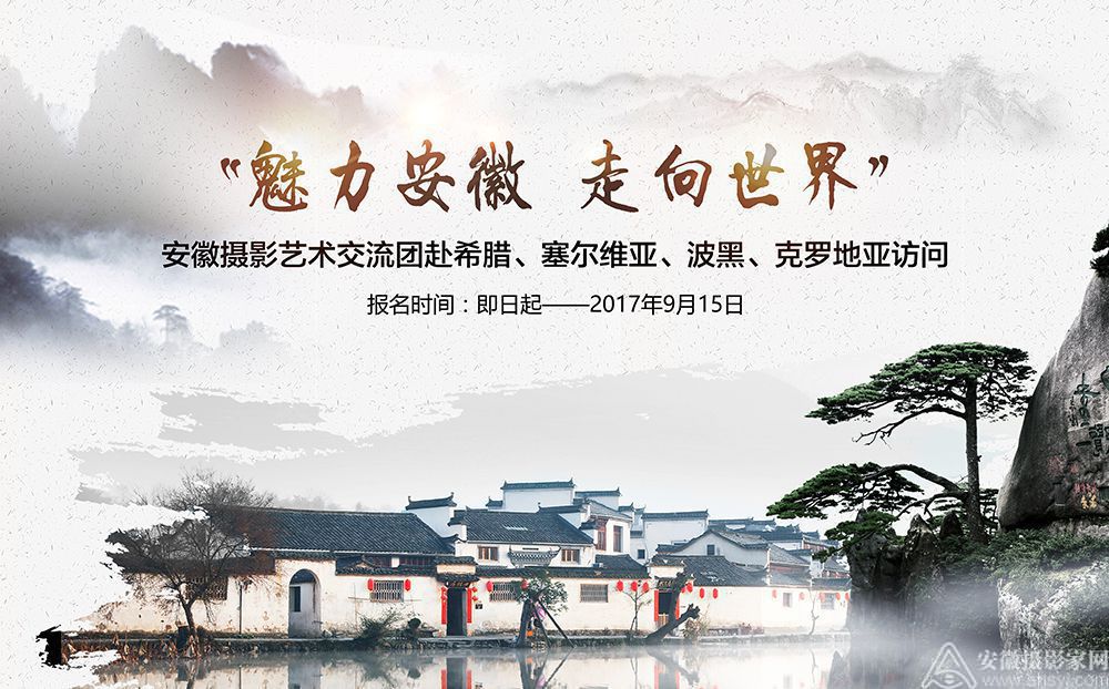 为进一步贯彻落实习近平总书记关于文艺工作系列重要讲话精神,加快建设创新型文化强省和文艺走出国门步伐,加大“五大发展”美好安徽外宣力度,促进中外摄影艺术交流,提升安徽摄影艺术在国内外的影响力和关注度,应有关方面邀请,经安徽省摄影家协会主席团研究,拟组织25名摄影家和摄影爱好者于2017年10月下旬赴希腊、塞尔维亚、波黑、克罗地亚等地举行“魅力安徽 走向世界——安徽摄影艺术交流访问团·希腊、塞尔维亚、波黑、克罗地亚之行”活动(暂定名),同当地有关部门和文化界、摄影界开展交流,并深入南欧、东欧多地进行摄影采风创作。