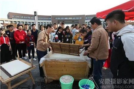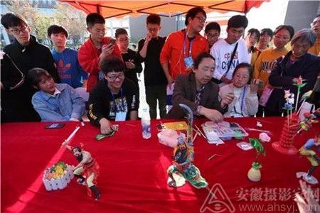 宣纸、徽墨、寿州窑、紫金砚……当天下午,安徽理工大学山南校区仰山广场上,宣笔等4个国家级非遗项目和吴山铁字等10个省级非遗项目代表性传承人一一展示绝活,让师生们叹为观止。
