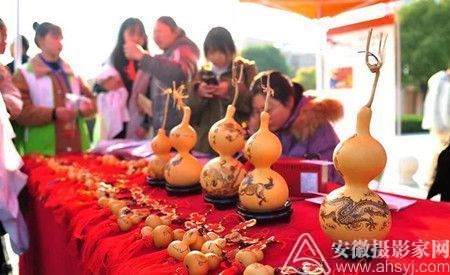 与此同时,来自全省各地的徽州木雕、界首彩陶、宿州乐石砚、灵璧钟馗画、葫芦烙画、剪纸等12个国家级、省级非遗项目代表性传承人现场展示代表作品,教授制作工艺,令师生大开眼界,一件件精美的传统艺术品洋溢着满满的徽风皖韵。