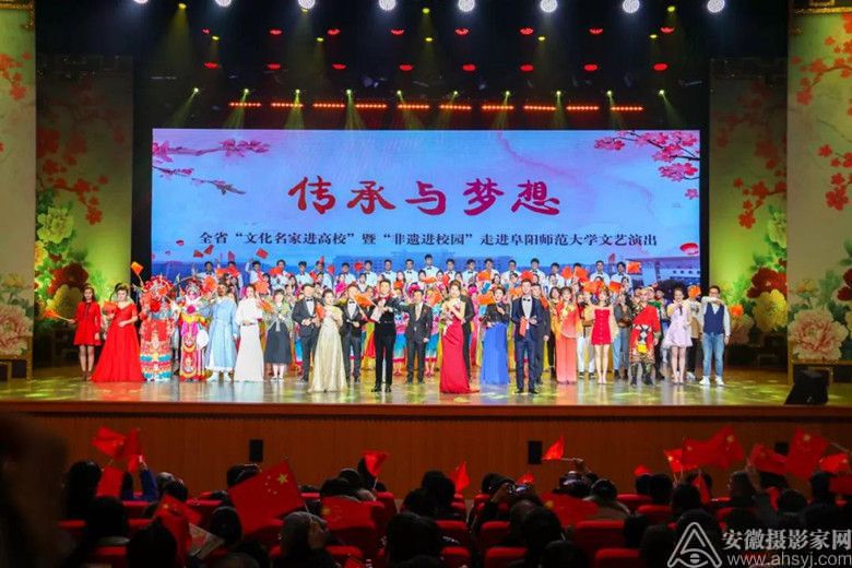 12月20日,由省委宣传部、省委教育工委、省文联、团省委主办,安徽演艺集团、省非遗研究会、阜阳师范大学共同承办的2019全省“文化名家进高校”暨“非遗进校园”活动收官之站走进阜阳师范大学西湖校区,通过现场表演、文艺指导和展示“非遗”项目,为师生们带来一场丰盛的文化盛宴。省委宣传部副部长、省电影局局长范荣晖等省直有关单位负责同志参加活动。