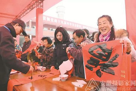 活动当天,省文联党组书记、副主席、书记处第一书记何颖,省文联主席、省书协主席吴雪率省文联文艺志愿服务小分队,为老区基层群众送去了丰富的“文化年货”。书法家现场提笔书豪为群众书写了400余幅以社会主义核心价值观和新春祝福等为主题的春联;《清明》《安徽文学》《诗歌月刊》《传奇·传记文学选刊》《艺术界》等文艺期刊向群众赠阅期刊杂志近2000册;摄影家为群众拍摄全家福、肖像照200余幅,部分打印装框现场赠送,并向乡镇集体和先进模范赠送了优秀摄影作品。