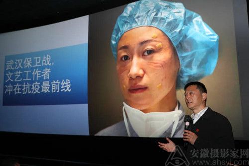 66个昼夜,4.2万名医疗队员肖像,4.2万个抗击疫情的故事,4.2万次感动……在合肥市政务区华润万象城英皇电影城4号放映厅里,李舸将他所率领的小分队开展“为天使造像”、参与“武汉战疫”的工作情况,以视频和图文的形式声情并茂地呈现在大银幕上。一张张图片、一段段视频、一个个故事,真情讲述了在抗疫一线亲身经历的感人故事,生动呈现了医护工作者救死扶伤的医者仁心和人间大爱,也让大家切实感受到摄影艺术在疫情防控阻击战中发挥出的凝聚人心、鼓舞士气重要作用。报告中,李舸还结合刚刚闭幕的党的十九届五中全会精神,谈了学习体会和思考,表示要牢记使命任务,更加履职尽责。近两个小时的报告会,让在场的每一个人深受教育,无不触动。