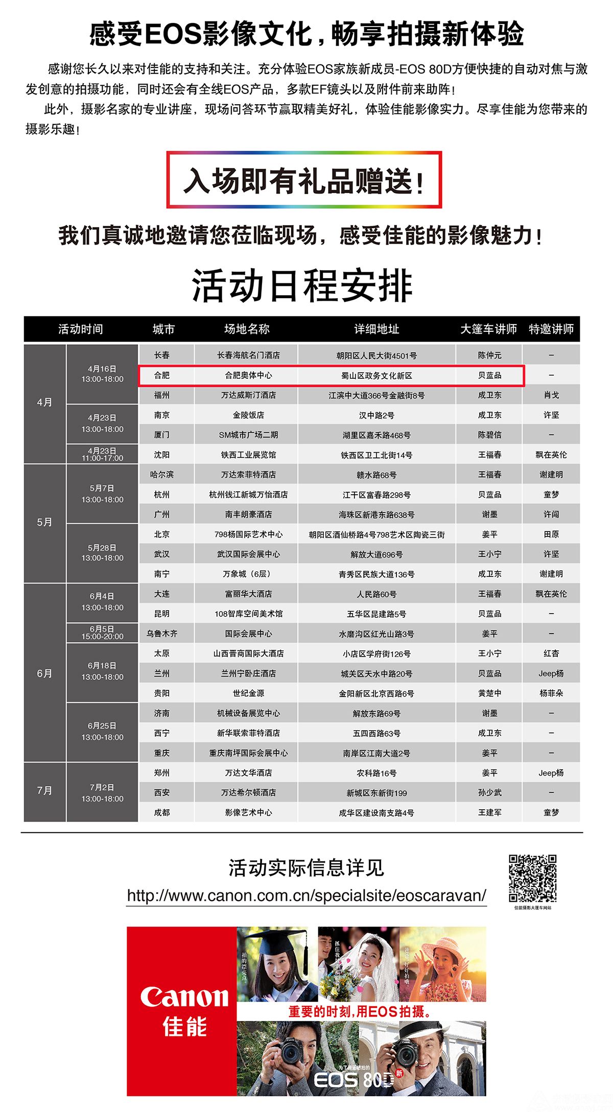 4月16日合肥奥体中心佳能新品大篷车活动,4月16日下午一点开始入场,本次活动的官网入口见下: