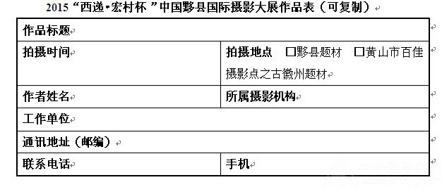 北京市东城区东四十二条48号中国摄影报社活动部“2015中国黟县摄影大展”办公室收(100007)