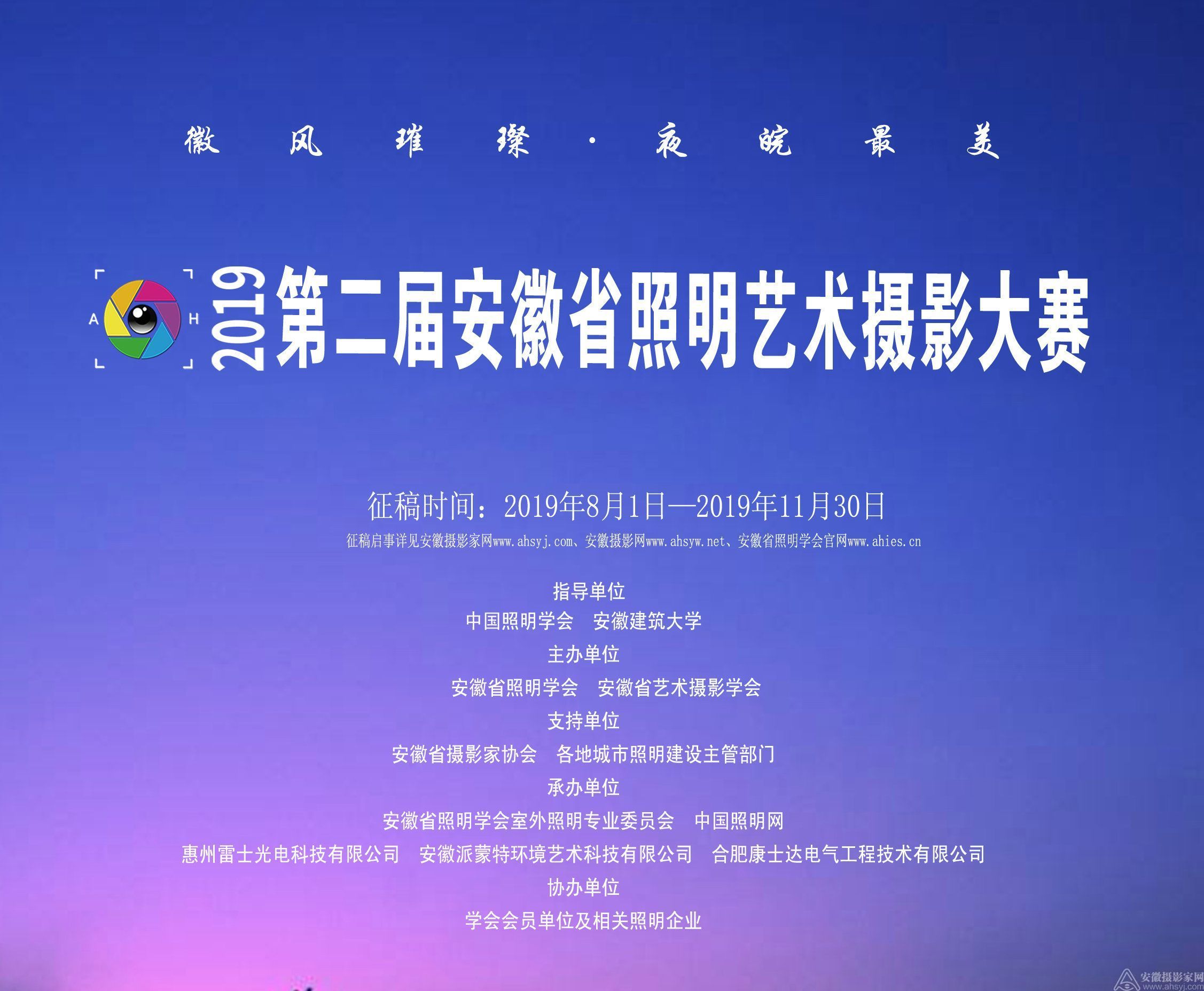 (三)支持单位:安徽省摄影家协会、各地城市照明建设主管部门