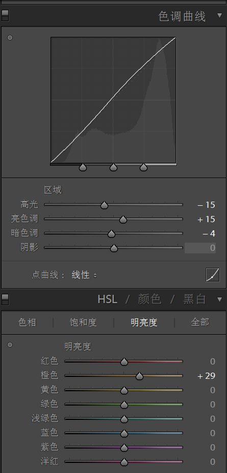 色彩的调整上,提亮橙色。这样做是为了让皮肤亮白一些。